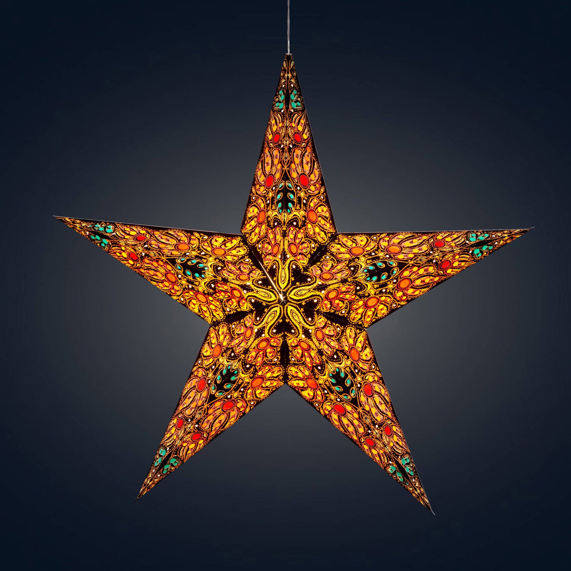 Unlike most paper stars, Artschatz Stars hang symmetrically with the tip pointing upward—reflecting the traditional symbol of protection and luck. The pre-installed clear cable exits through the top point for proper orientation and fast setup, you will find that others hang awkwardly from a side seam.