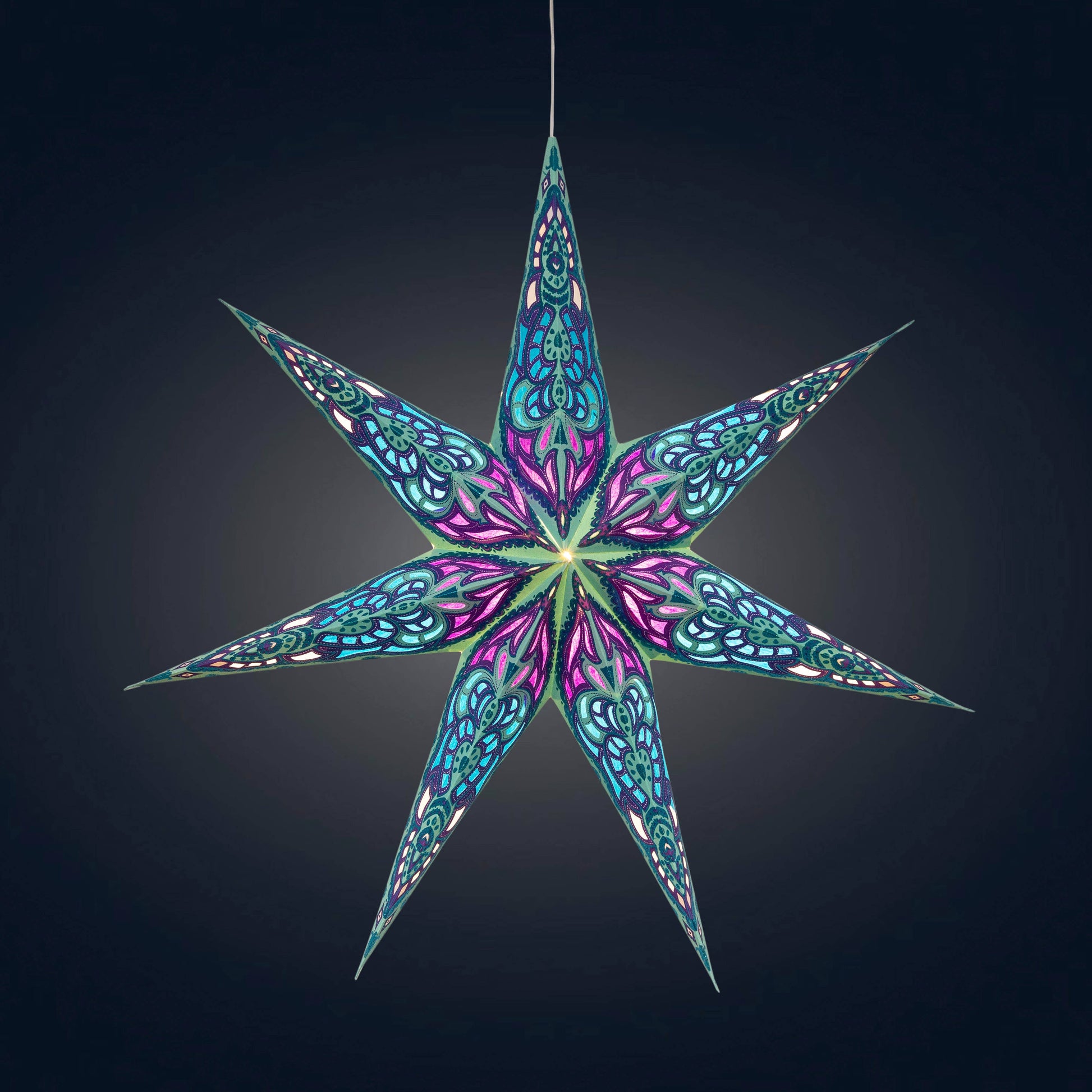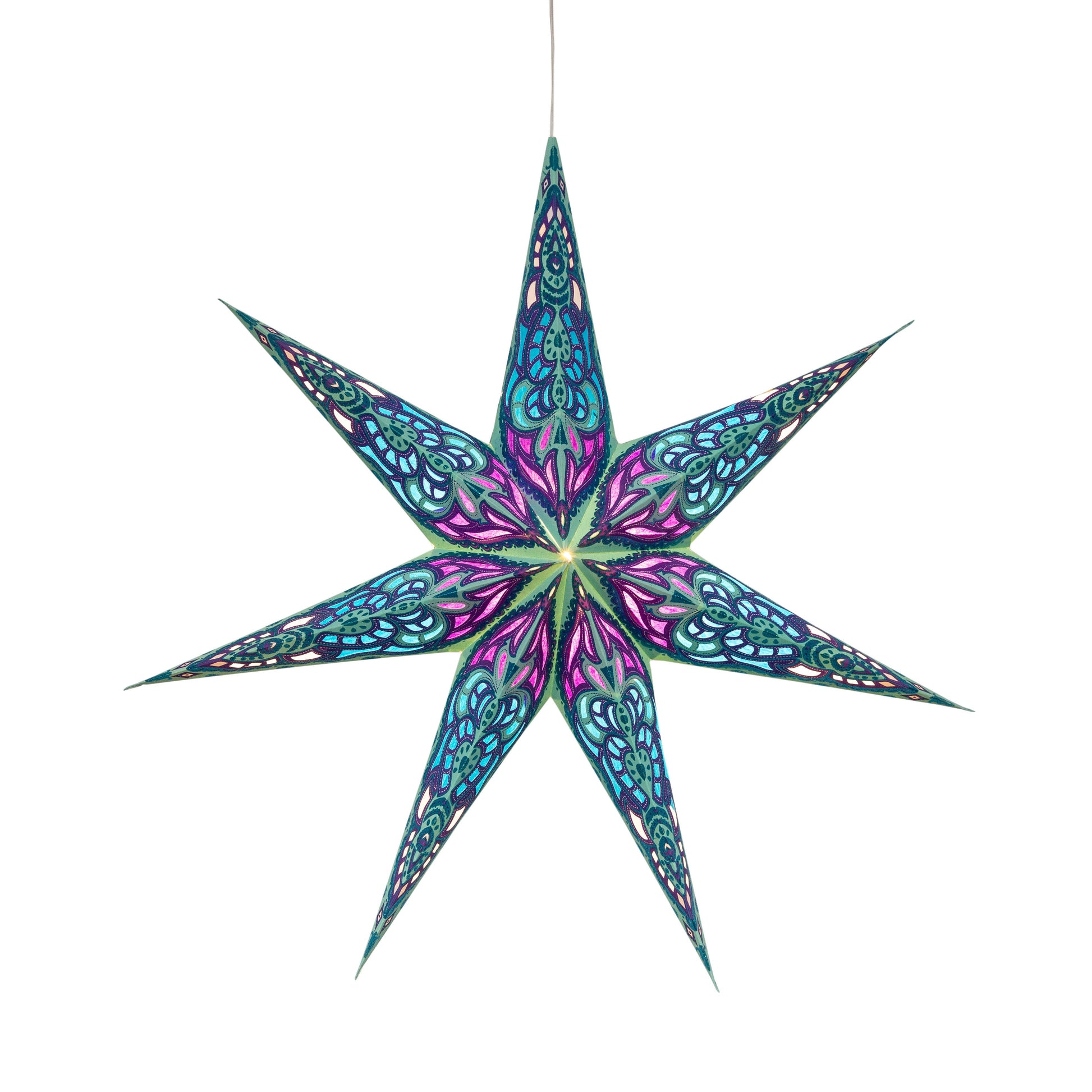 Nigella 7 Point 23" Green / Purple Paper Star Lantern Light