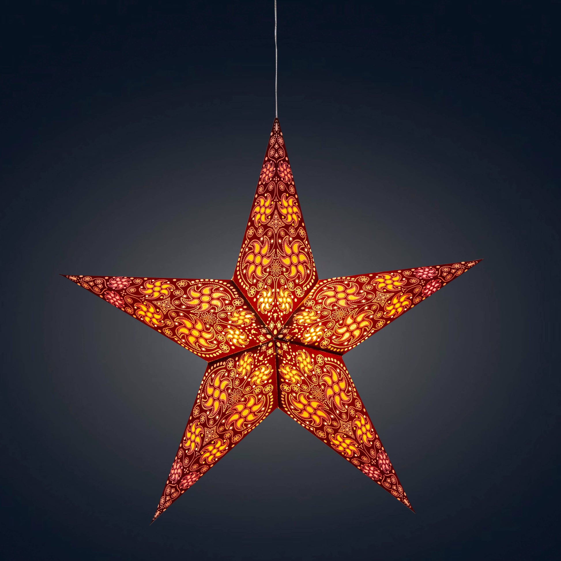 Each handmade paper star comes with a pre-installed clear 12-ft cable, an energy saving LED bulb and a 5V AC Adapter.