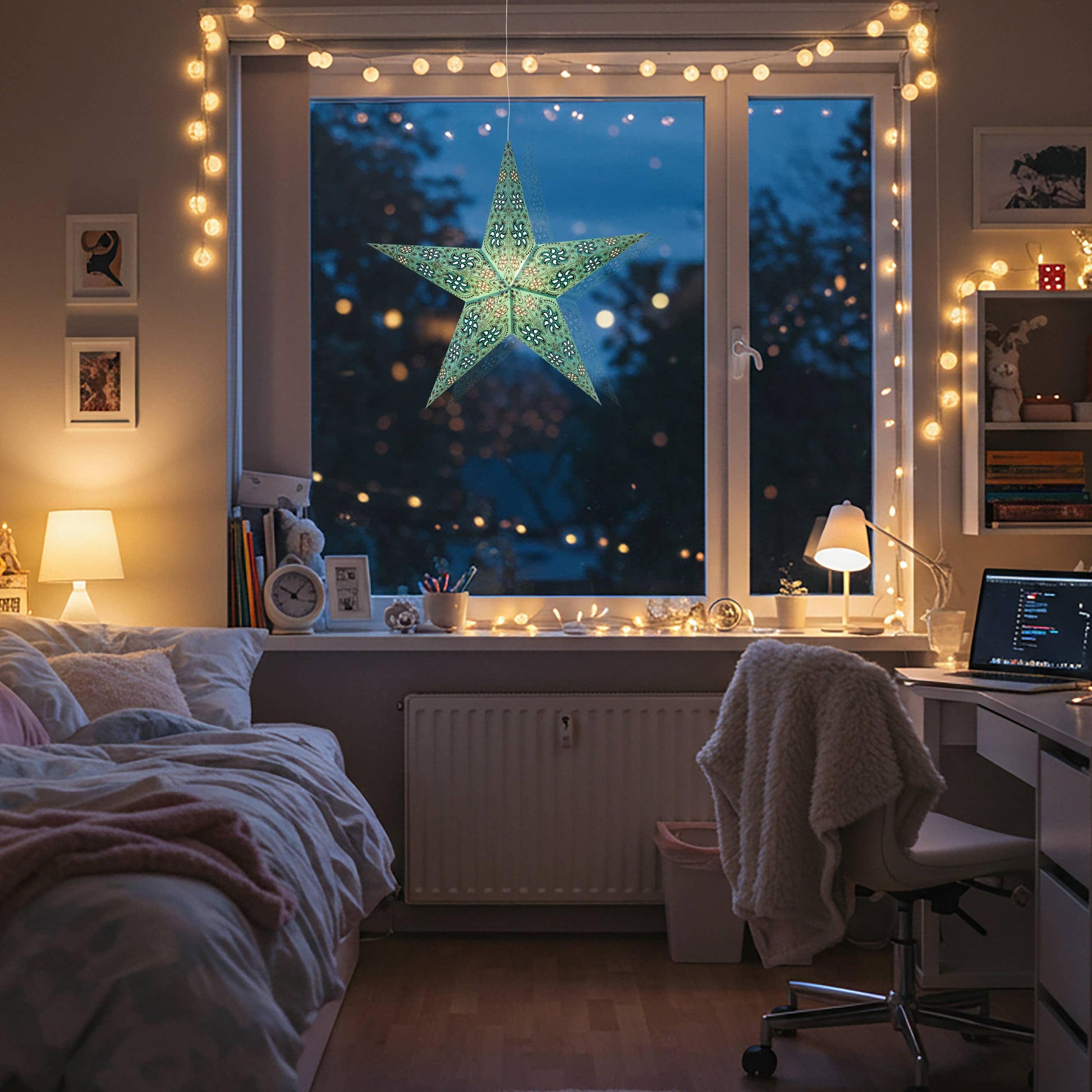 Siklon 5 Pointer 24" Teal w/Glitter Paper Star Lantern Light
